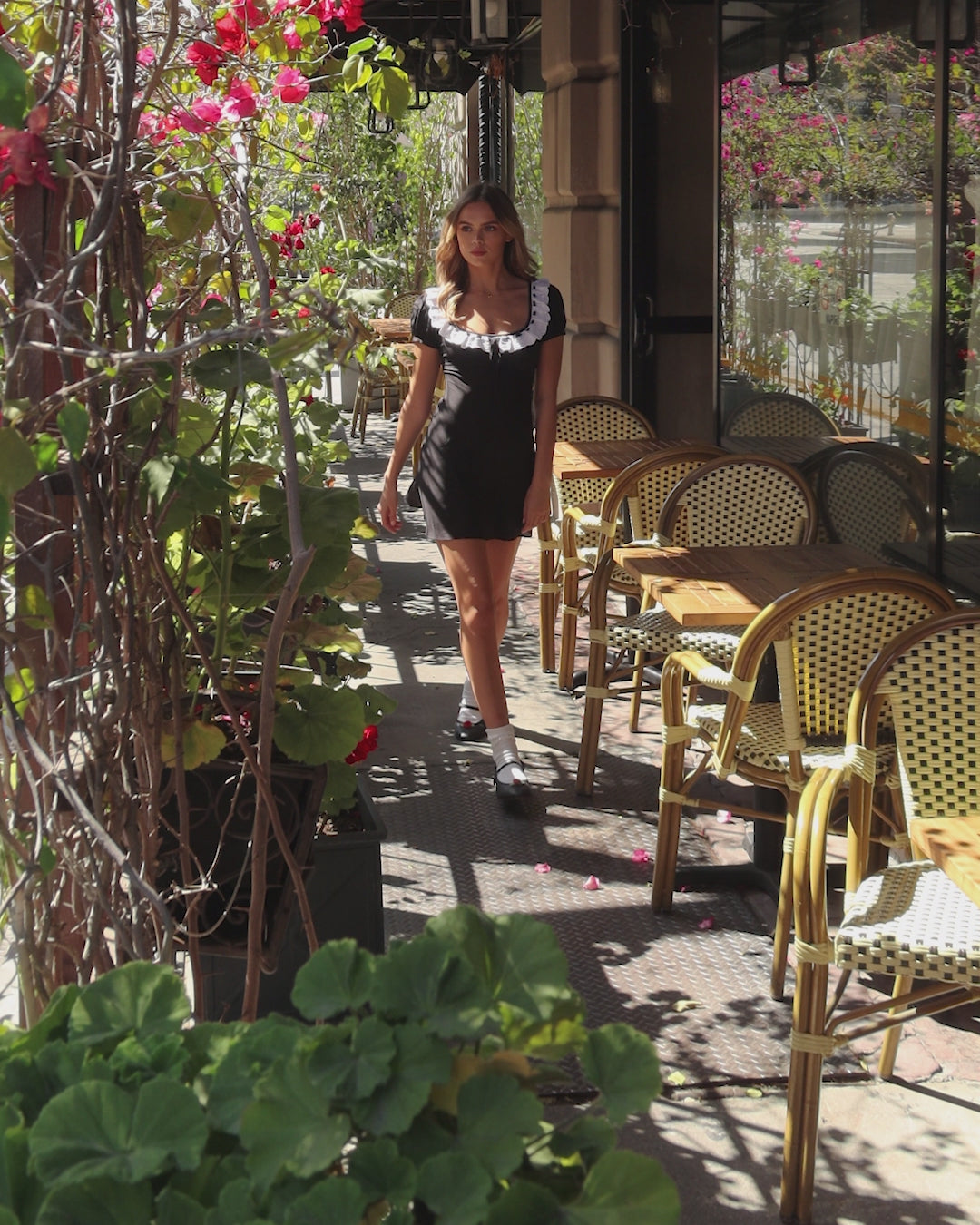 Dainty but a little daring, Alise is a bias-cut silk dress with a low neckline trimmed with cotton eyelet lace and a silk tie at the bust. Empire waist, with a wide tie in the back to get the perfect fit. Bodice is lined, skirt is unlined. Bra-friendly, low balconette recommended.