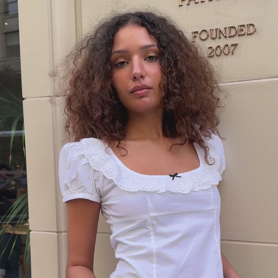 The perfect floof of a miniskirt with hot pants under so that things don't get too crazy. Low rise with a flat waistband and gathered skirt trimmed in cotton eyelet lace. Made in our thick stretch cotton twill.